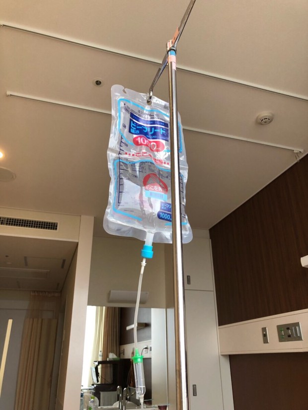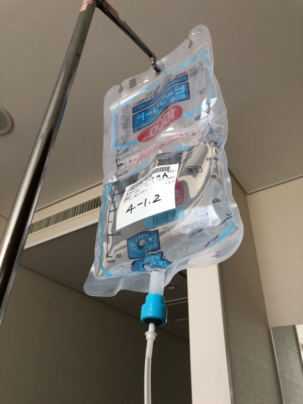 寝る時に 点滴が邪魔でしょうからと、消灯まで 点滴を落とすスピードをアップアップしまして、消灯時に ギリギリセーフで落とし終わり、切り離し。今日は なるべく昼間は寝ないようにしていたので、夜は しっかりと眠れましたzzz…。