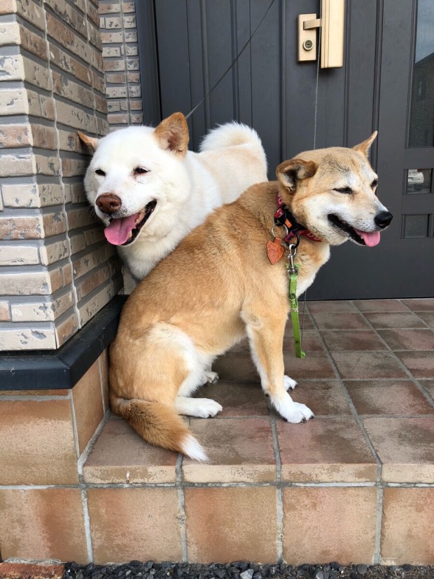一旦帰りまして、お2人のシッコタイムU^ェ^U どんなに暑くても くっついてみる仲良しさん(^o^)/