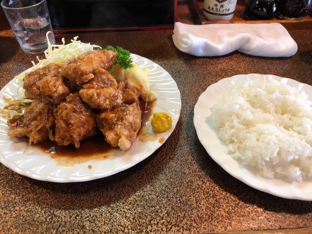 カレーがイチオシの【美延】さん。昨日は、ガッツリいきたかったので、鶏唐定食にしました(^○^)