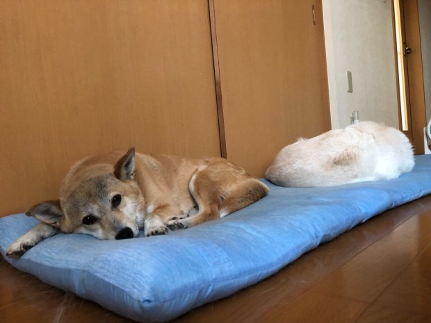 一旦お家に帰り、日陰の散歩を済ませて ご飯を食べさせたら、お2人は またまた お昼寝zzz…。
