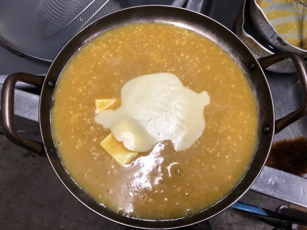 昨日の お客様は、揃って 食べ方が一緒でして、豆腐を食べた後 ライスを頼みまして、お鍋へドーン❗️グルグル混ぜて カレーおじや風にして 〆として食べてくれていました(o^^o)