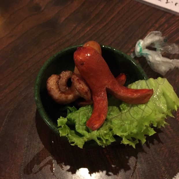 せっかく 日向の誕生日だったので、よりもい関係の お客様には タコさんウインナーをお通しに出しました(^○^)