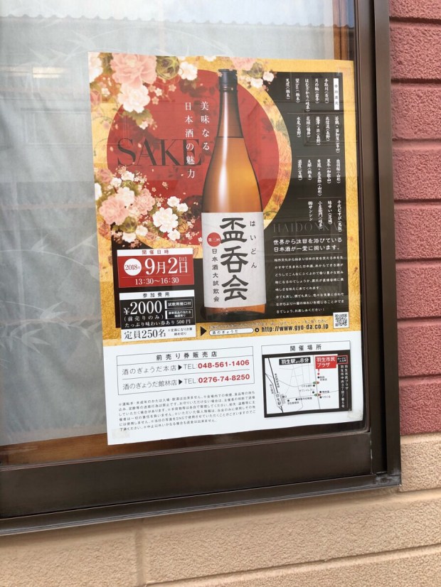 酒屋さんから ポスター掲示の依頼が来ましたので、東側の窓に掲示しました。