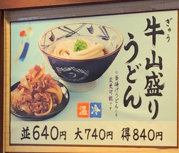 【丸亀うどん】で 牛山盛りうどんにしました。