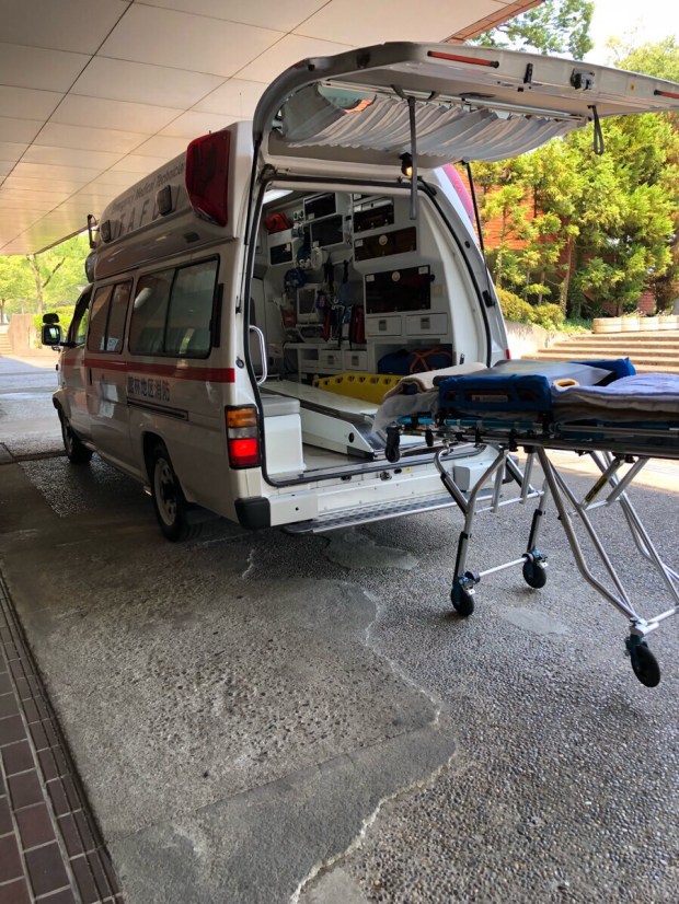 ちょいとトレーニングをしに、いつもの 城沼体育館へ行きましたら、瞬ぴぃの後ろから ピーポーピーポー号が やってきまして(汗)