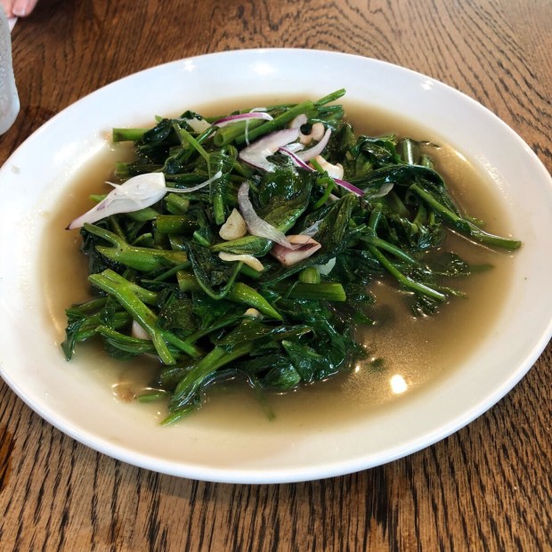 続いては、空芯菜とイカの炒め物。