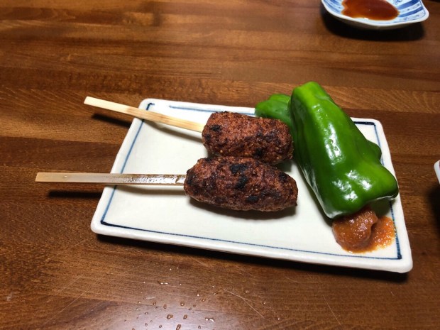 前回、Kさんが教えてくれた、ピーマン付き つくね〜