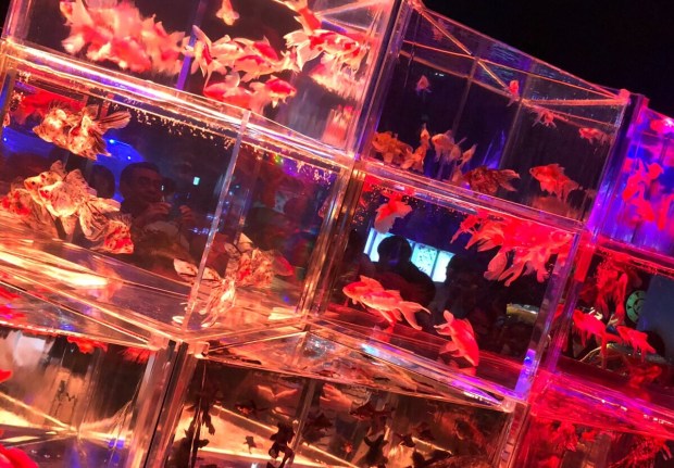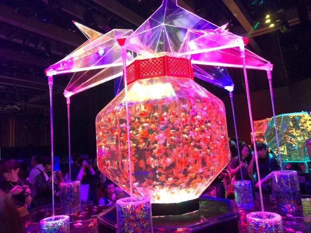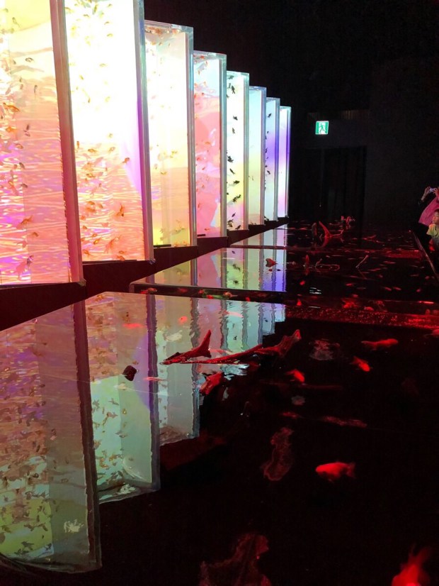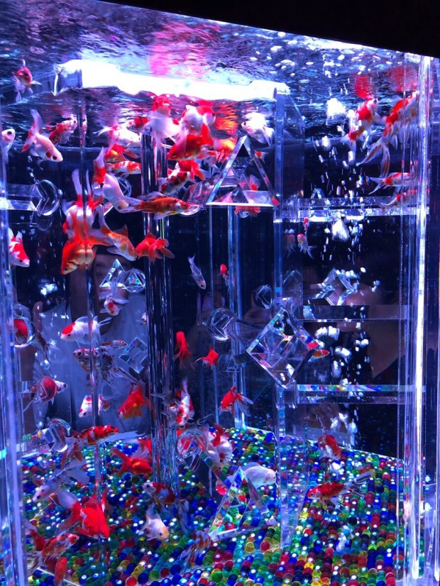 出っ張った所から 覗くと、万華鏡的な感じに見える水槽だったり〜