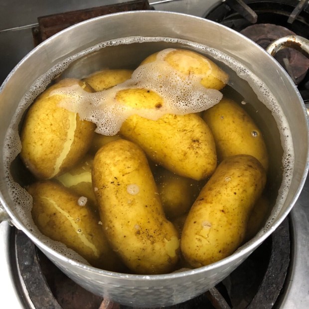 人気者もポテトサラダの仕込み〜。