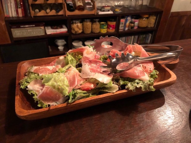 生ハムのシーザーサラダから始まり〜。