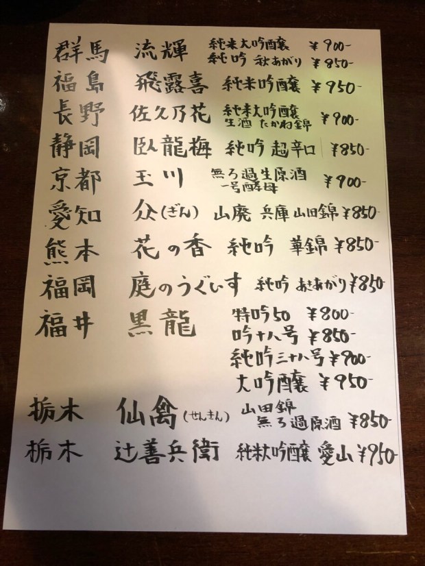 お酒のメニュー。