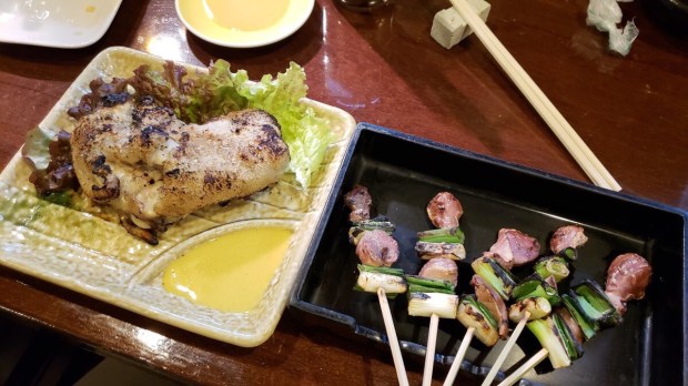 砂肝と豚足で 芋のお湯割り〜!!