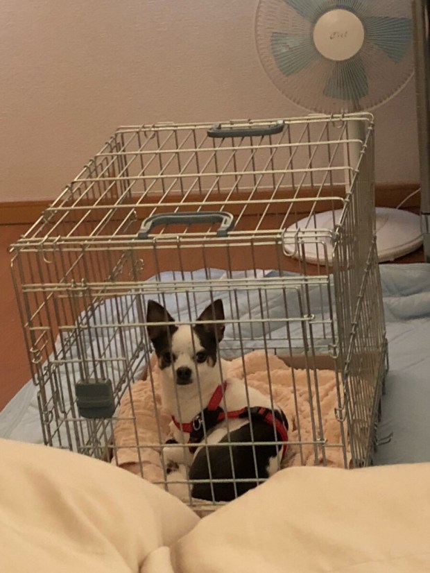 朝まで大人しく、シッコもしないで良い子にしておりました。