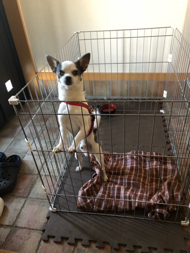 帰って来まして、サークルを組み立てましての お留守番(^^)