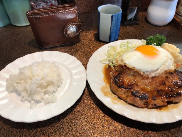 しっかり体力を使いましたので、【美延】さんで、ハンバーグと半ライス!