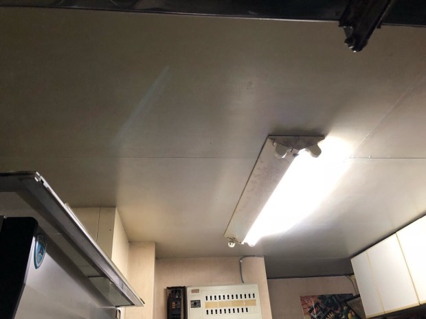 モグモグタイムを入れまして、お店に戻り 天井との戦い٩( ᐛ )و