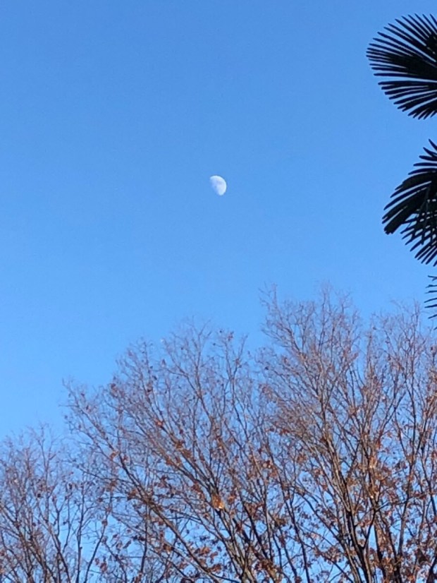 午後の散歩の時間には、お月様も クッキリ見えてました(^^)