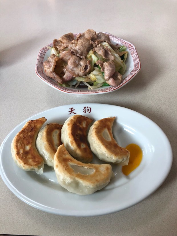 ランチは、【中華料理 天狗】さんで、餃子と肉野菜炒め〜(o^^o)