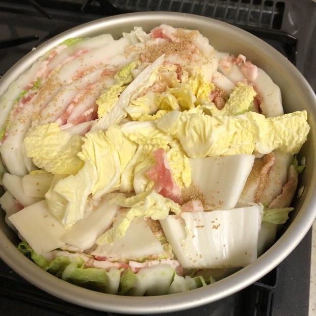 白菜と豚バラのミルフィーユ鍋を食べた事ないというので、簡単だから 作ろっか⁈となりまして(^з^)-☆
