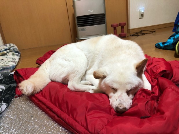 食べ終わる頃には、お殿様は 瞬ぴぃのダウンジャケットを上手く ベッドにしまして爆睡(_ _).。o○