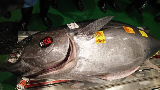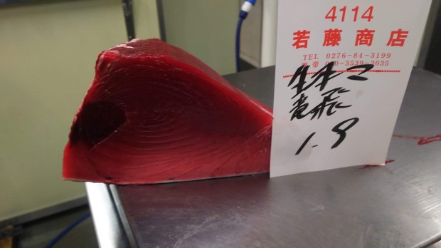 ちなみに こちらの鮪様が、あの有名社長の お寿司屋さんが落札しました3.3億円のブツでございます(大汗)