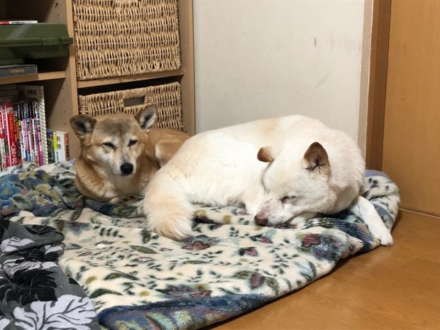 満足しまして、帰宅しまして 2人の散歩して、御飯を食べさせてからの〜マッタリタイム♪(´ε` )