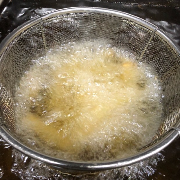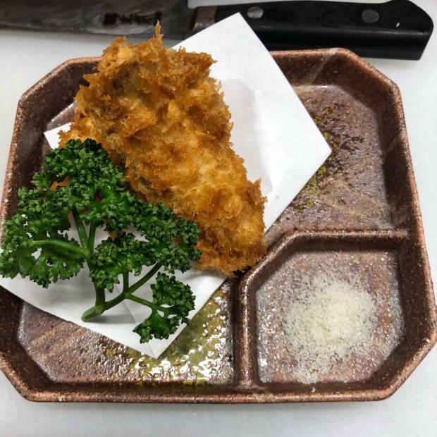 お店の方は、一昨日入荷しました 仙鳳趾産 真牡蠣を使いました、お塩で食べるカキフライ(^^)/