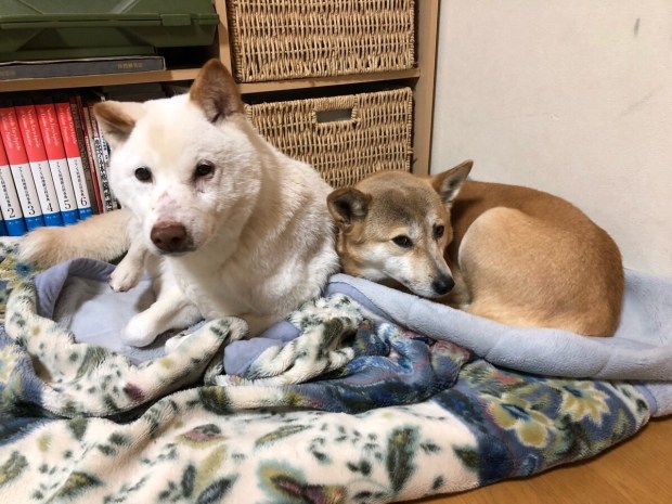 朝起きて、お散歩行くのに リビングへ行きますと、まだ寝ておりました お2人さんU^ェ^U