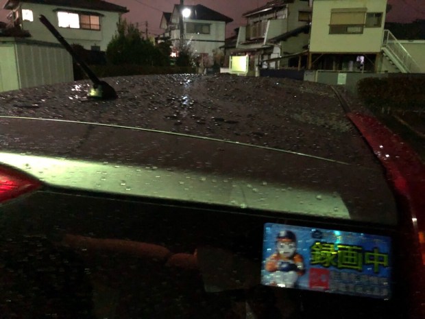 お仕事終わって 帰る頃には、しっかりと 車も濡れておりまして、水たまりも 大きくなっておりました。