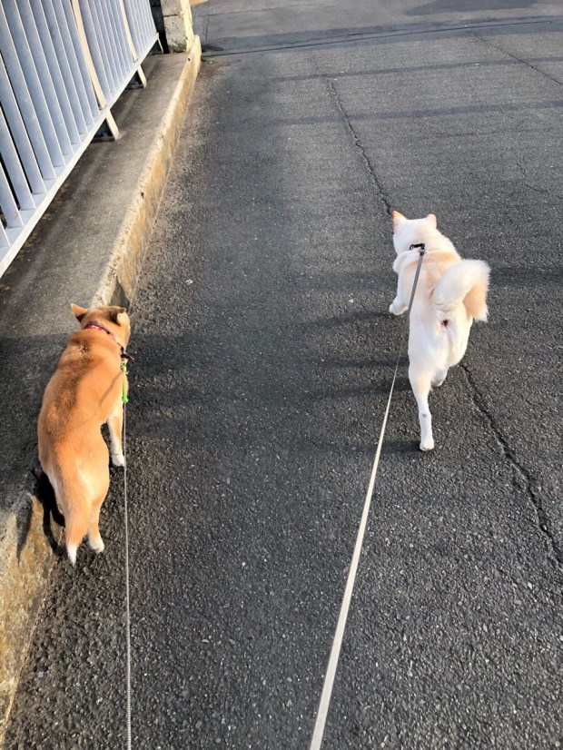 午後の お散歩も気持ち良く、2人は シンクロシッコ( ^ω^ )