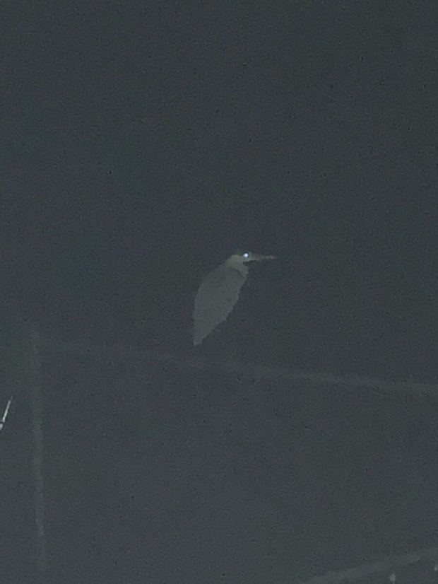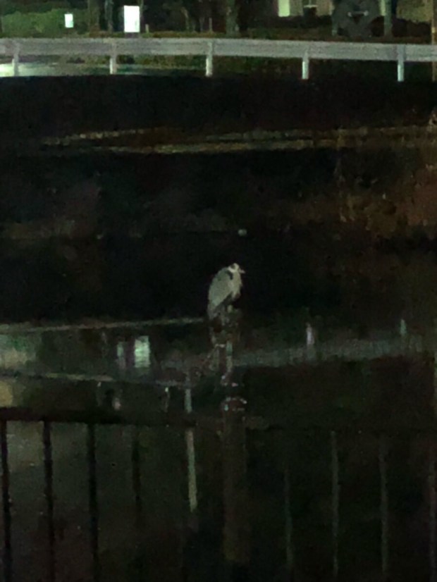 夜の散歩時には、なかなか見る事が無かった、鷺さんが 定位置⁈に(*´ω`*)