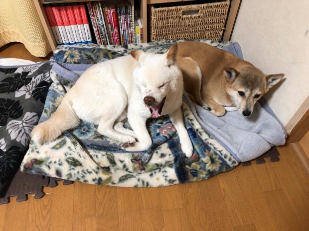 朝、ちょっと ゆっくり目で起きましたら、タイミングが違ったからなのか、お二人さんも起き上がらず(^^;;