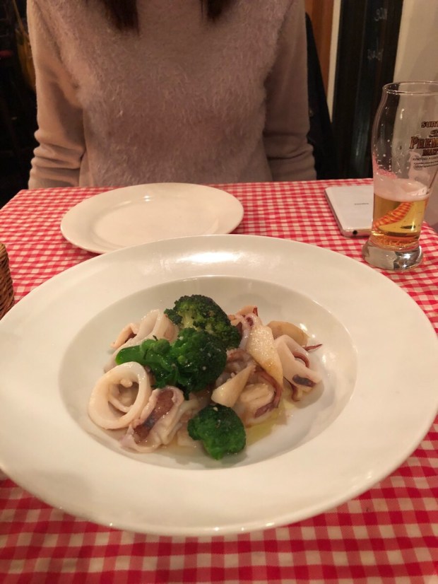 ランチでも 沢山食べました、ブロッコリーさんとイカから始まりまして〜!