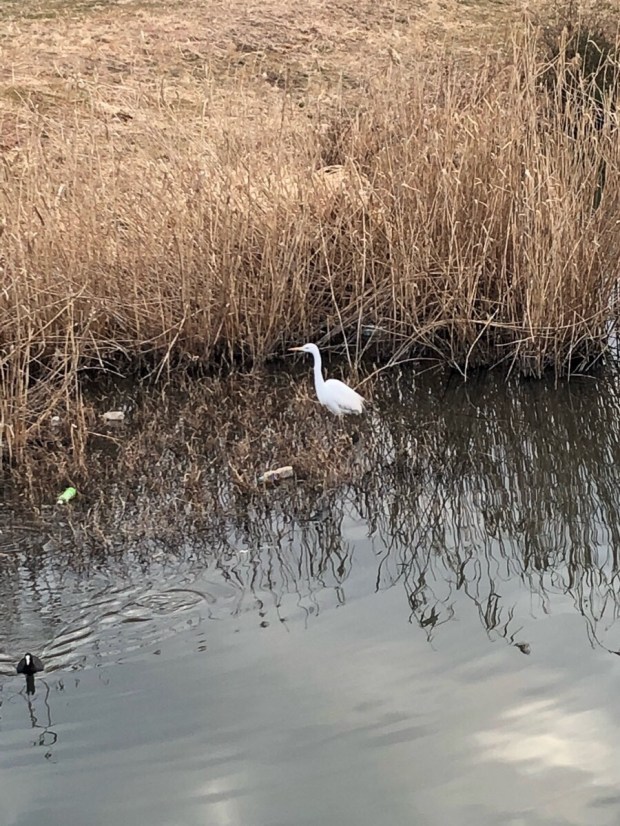 お散歩に出ますと、いつも いらっしゃる 鷺さんでは なく、白い鷺さん⁈が(≧∀≦)
