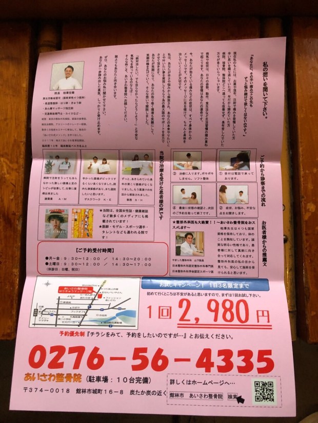 瞬ぴぃの お客様であります、【あいさわ接骨院】様の ポップが 新しくなりました╰(*´︶`*)╯