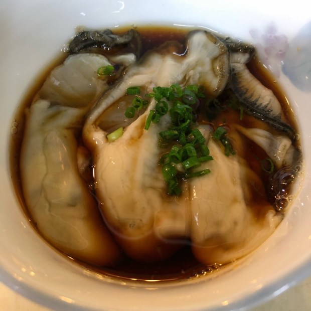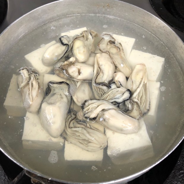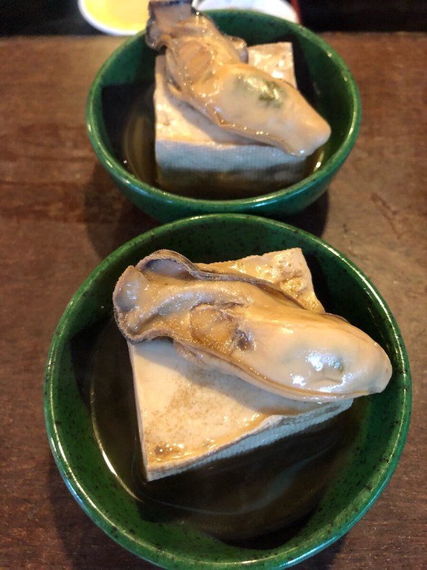 お通しにも 贅沢に牡蠣を使いましての〜。