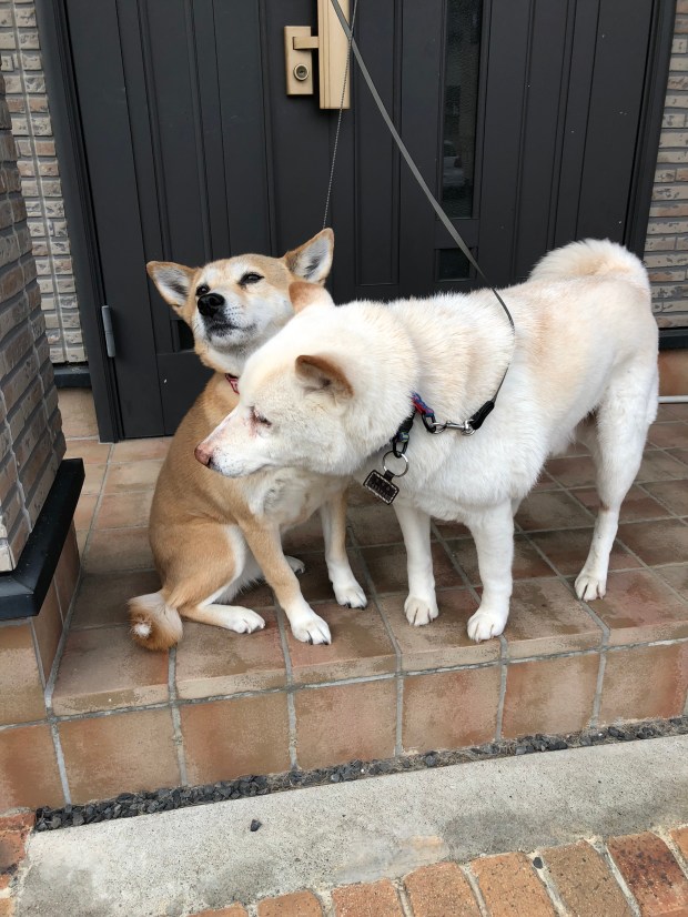 お散歩終わって、お行儀良く待っているヒバ子さんに、お殿様は グイッと一歩前へσ^_^;