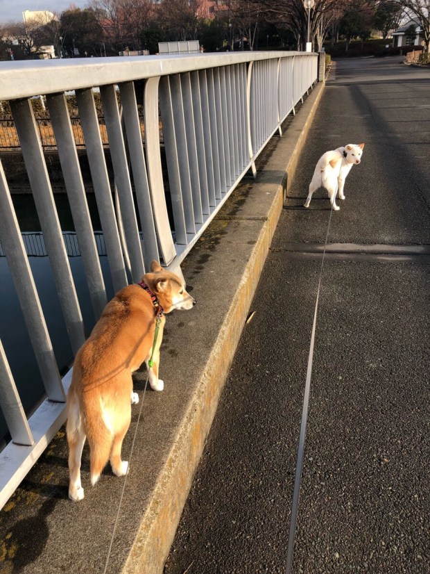 朝、いつもの時間に いつの模様に、お二人さんの散歩に出まして〜U^ェ^U