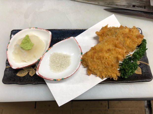 初日のオススメ方は、贅沢にアジフライ(⌒▽⌒)