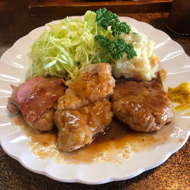たまたま 市役所の同級生も 御来店しまして、これまた たまたま 瞬ぴぃと同じ ミックスグリルをご注文(笑)