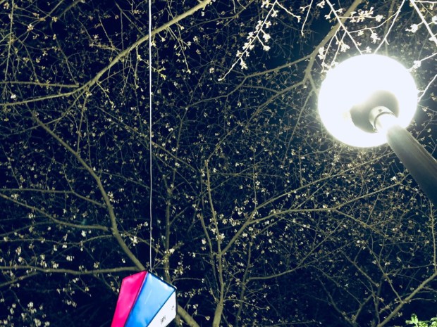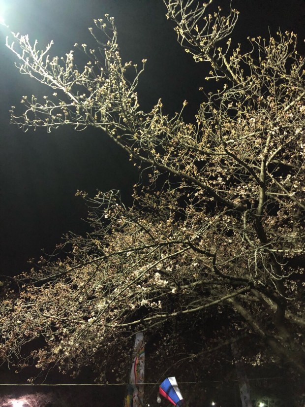 無事に終了し、帰宅しまして お散歩へ出ますと、街灯に光る 桜(≧∀≦)