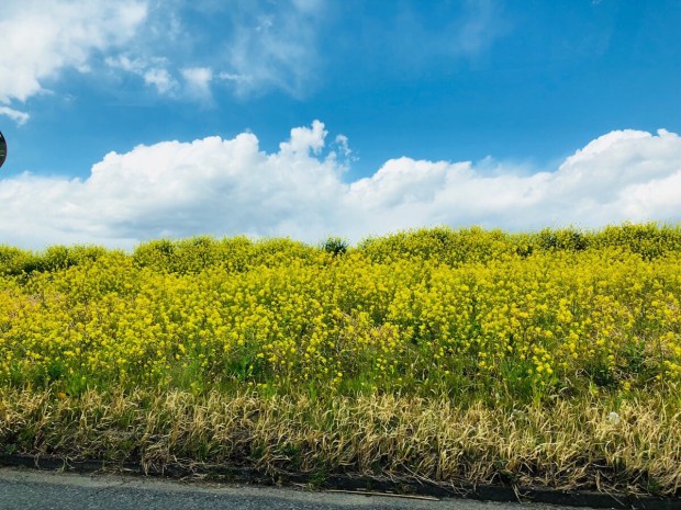 羽生から 明和町に入る辺りの土手沿いにも 見事な菜の花が広がっておりまして(^^)/