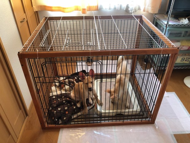 準備しておきました、サークルへ入ってもらいまして、良い子にしててねーと。