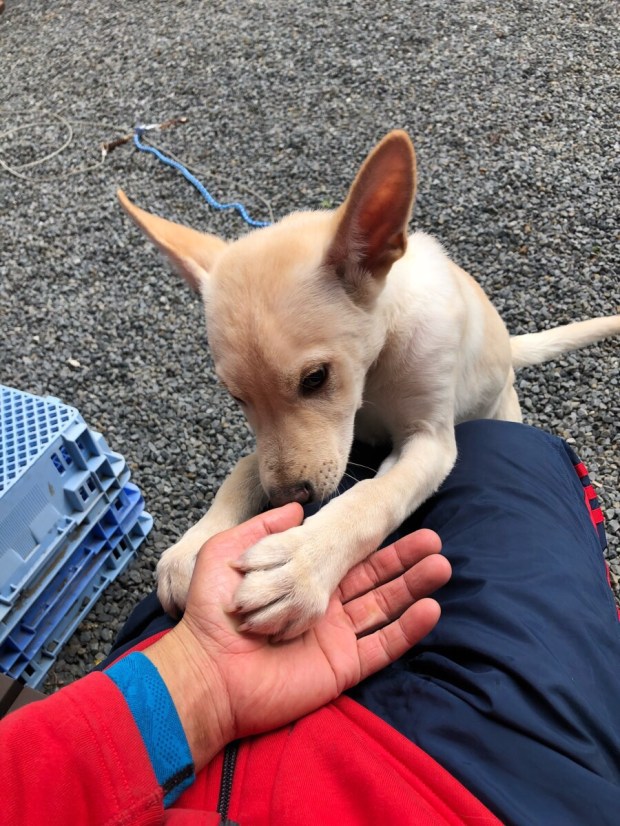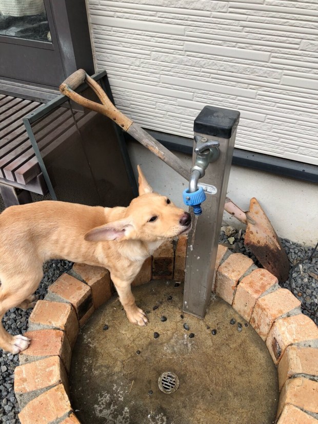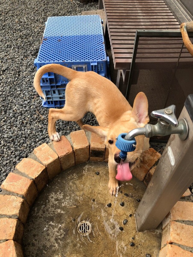 お水の丼を 2人で ワッチャかして割ってしまいまして、手に お水を汲んで あげていたんですが、自ら 直飲みに切り替えました(笑)