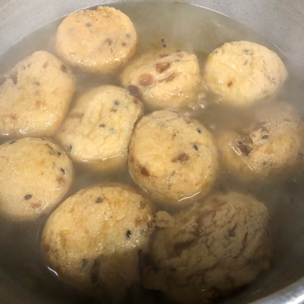 お店の仕込みは、今日の お通しの がんもどきをコトコト♪( ´θ`)