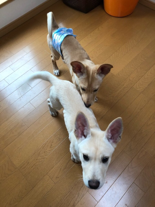 雨の中、お庭に出してみようかなーとも思ったんですが、お部屋deドッグランにしましたU^ェ^U