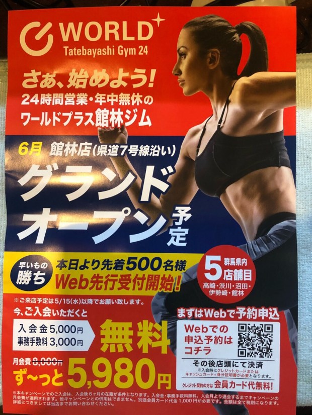 とおとお 館林にも24時間営業のジムが6月にオープンするとの事❗️
