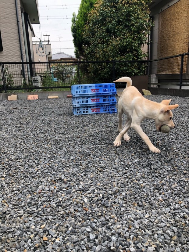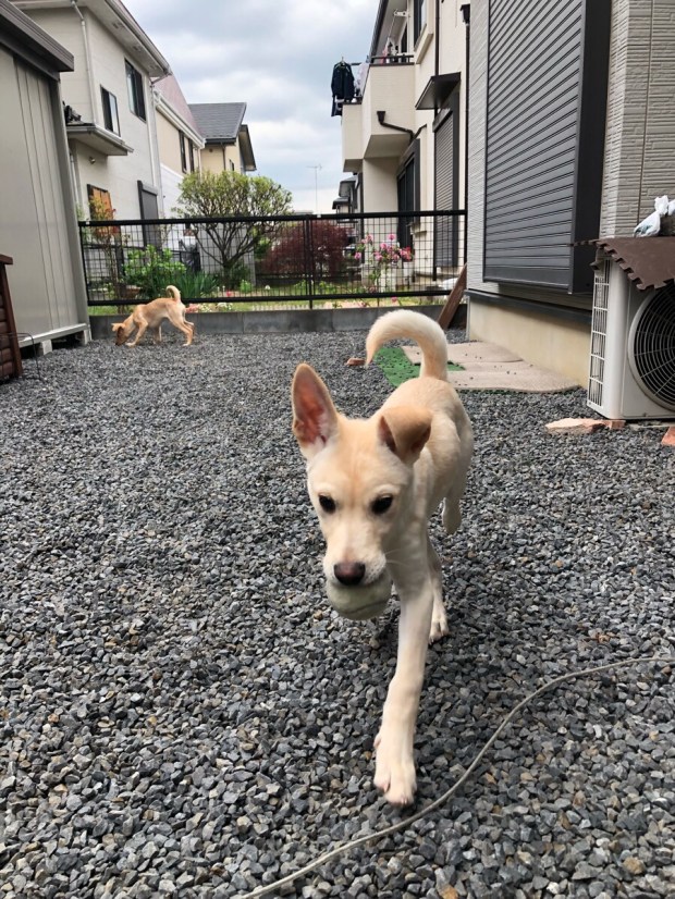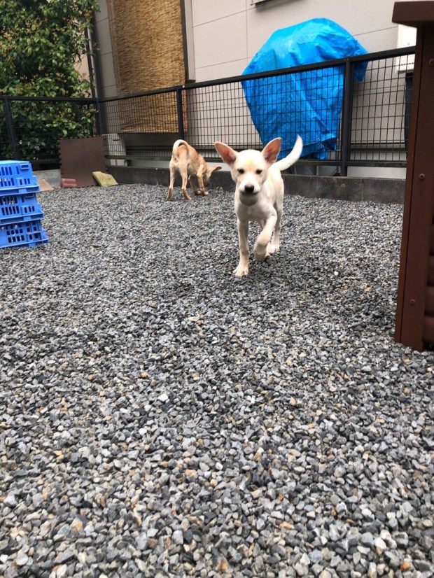 一度帰宅しまして、大人組の散歩を済ませてから、カフェラテ兄弟をお庭deドッグランで、ワチャかタイム\(^o^)/