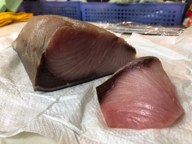 お出ししようと 日にちを逆算しましての、天然鰤の生ハム‼️