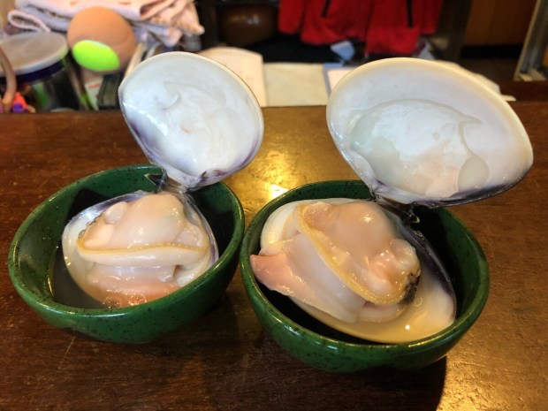 お通しは、贅沢に ハマグリの酒蒸し( ̄∀ ̄)
